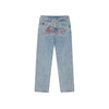 Ce produit présente une coupe loose, une braguette zippée et des poches arrière renforcées pour un usage quotidien. Le denim offre une bonne tenue tout en restant confortable. On retrouve les signatures visuelles de la marque avec le Running Dog en cristaux multicolores sur l’avant, ainsi que les broderies IC et le lettrage « IC » appliqué sur les poches arrière, affirmant pleinement l’ADN graphique d’ICECREAM.