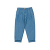 Ce produit présente une coupe ample et droite, ajustée à la taille grâce à des doubles pinces. Sa matière légère offre un tombé souple tout en conservant l’aspect d’un jean clair. Il dispose de deux poches italiennes à l’avant, de deux poches passepoilées à l’arrière, ainsi que d’un ourlet en bas de jambe.